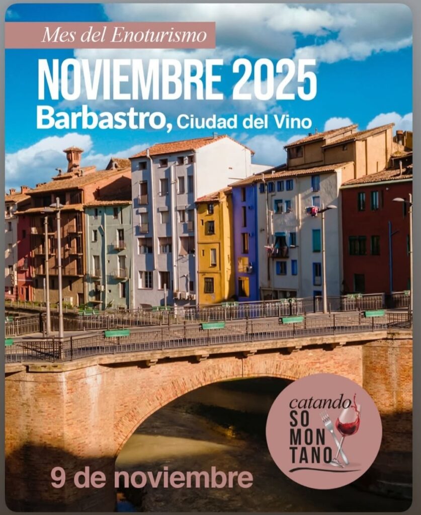 Esta cita forma parte del amplio programa Catando Somontano 2025, que se desarrolla durante todo el mes de noviembre para celebrar el vino, el enoturismo y la cultura vitivinícola del Somontano de Barbastro.