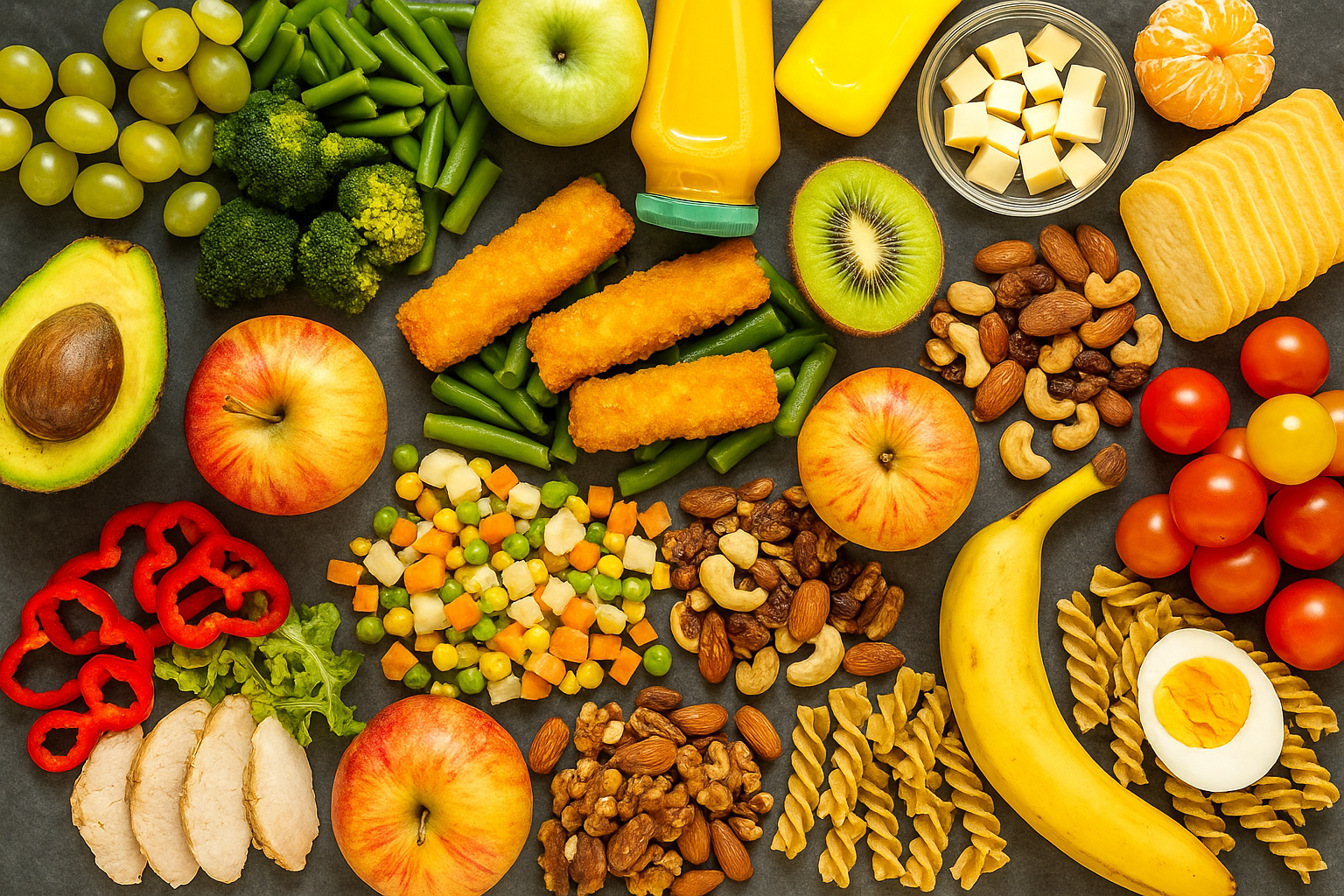 - Desayuno: Pan integral (120 kcal) + queso fresco bajo en grasa (80 kcal) + tomate (20 kcal) → 220 kcal